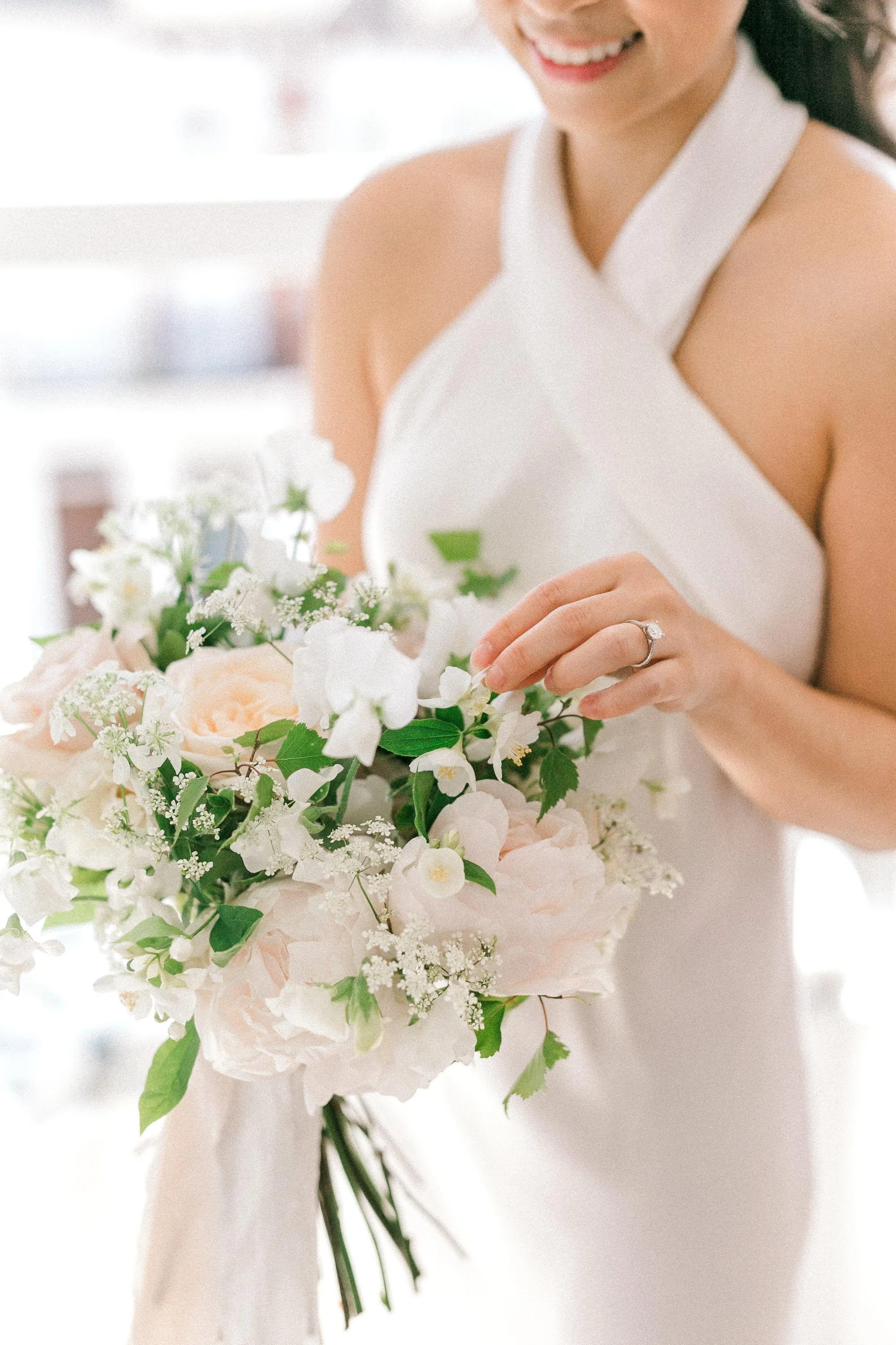 Flowers used: Peonies, Sweetpeas, Ammi, White O’hara Roses, Philadelphus